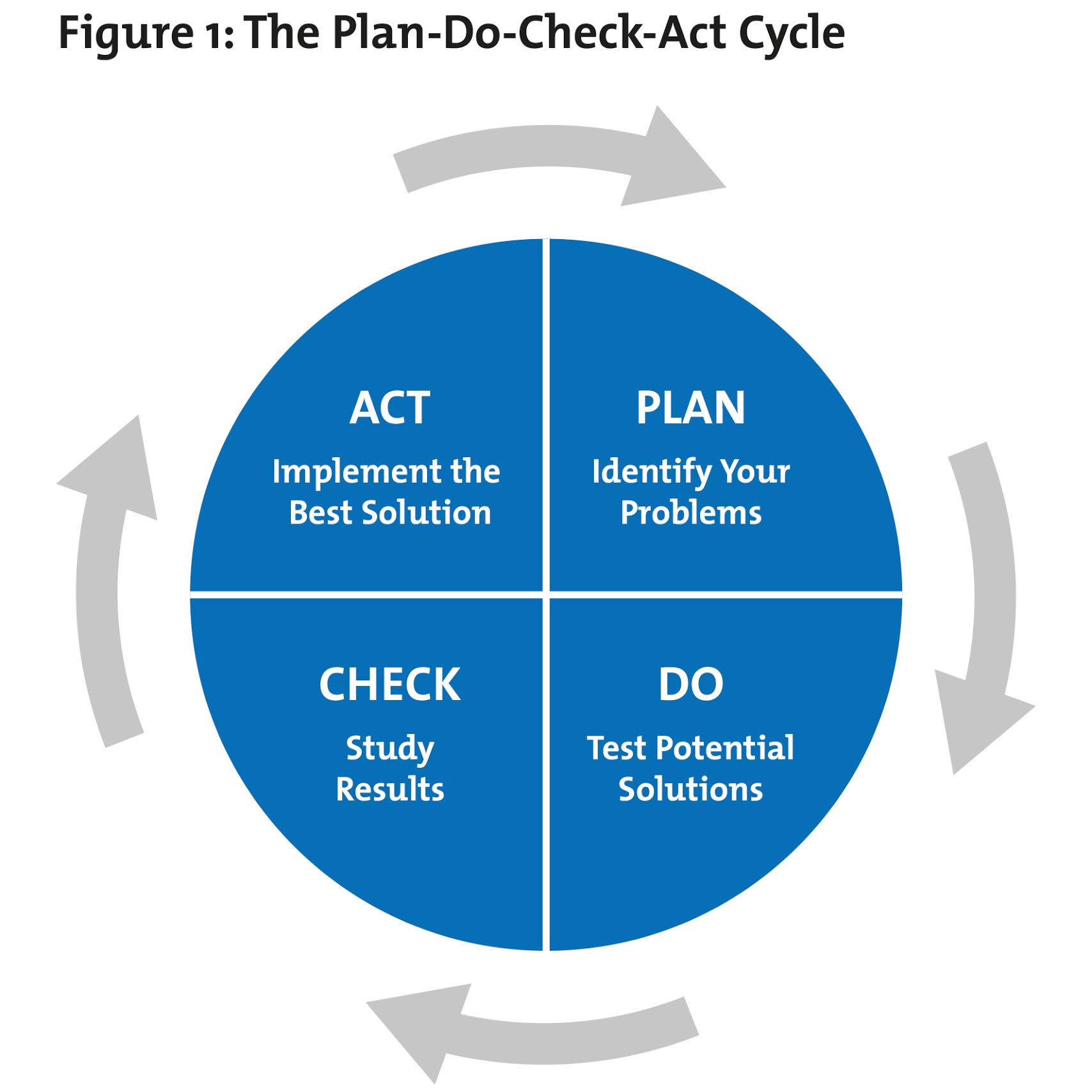 該方法從規(guī)劃階段開(kāi)始,在該階段清楚地識(shí)別和理解問(wèn)題,并定義改進(jìn)理論。在 Do 階段小規(guī)模測(cè)試潛在的解決方案,然后研究和檢查結(jié)果。