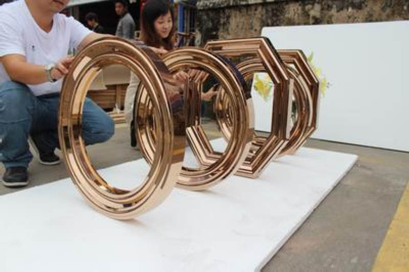 高檔的酒店現(xiàn)在都流行用不銹鋼的產(chǎn)品進(jìn)行點(diǎn)綴和裝飾,比如說不銹鋼屏風(fēng),不銹鋼畫框等等。這些產(chǎn)品更難體現(xiàn)奢華的現(xiàn)代和歐式裝飾風(fēng)格。KTV或者星級酒店里面使用的不銹鋼產(chǎn)品就更多了。比如不銹鋼茶幾,不銹鋼包邊等等。不銹鋼經(jīng)過鍍鈦之后它的表面可以呈現(xiàn)鈦金,玫瑰金,黑色等顏色,色彩光耀奪目,煞是好看。它的制作流程一般是: