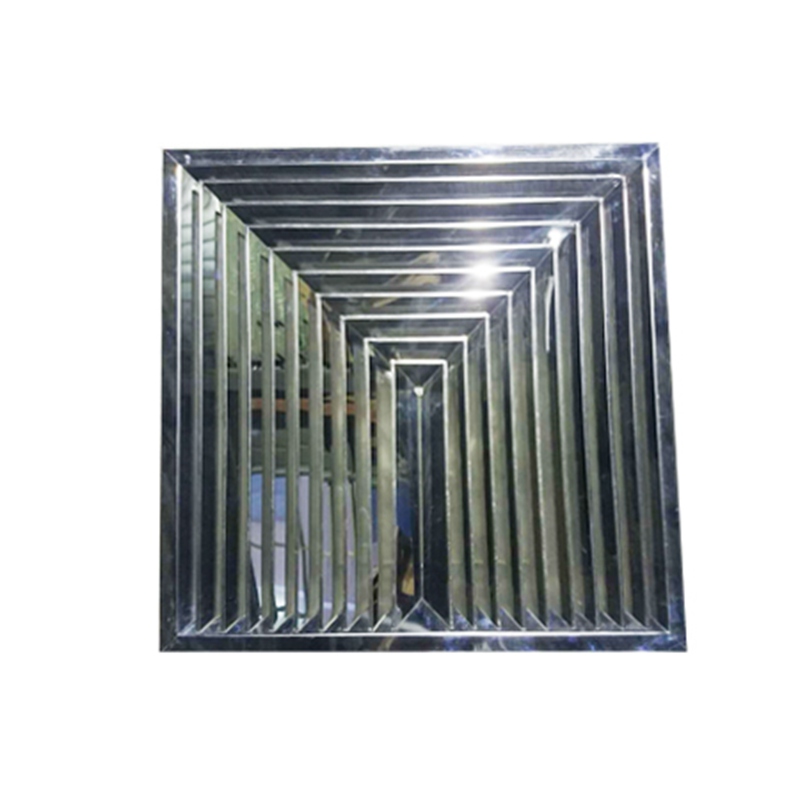 不銹鋼百葉式風口具有正壓的空調房間自動排氣,通常情況下靠風口的百葉自重而自然下垂,隔絕室內外的空氣交換,當室內氣壓大于室外氣壓時,氣流將百葉吹開而向外排氣,反之室內氣壓小于室外氣壓時,氣流不能反向流入室內,該風口有單向止回作用。