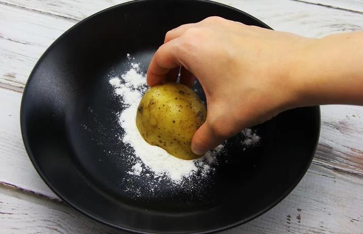 1. 將土豆切成兩半。這種方法溫和,但僅適用于薄的表面水平銹痕。