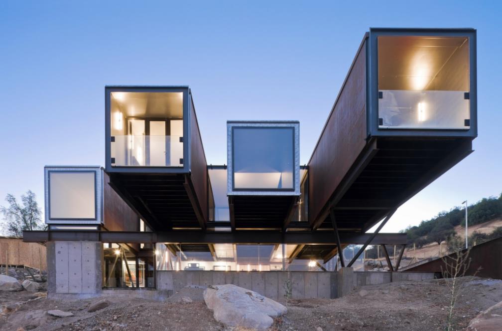 這種美景坐落在智利的巖石山坡上,就在圣地亞哥城外。雖然是用 1 2個(gè)海運(yùn)集裝箱制造的,但很容易被誤認(rèn)為是價(jià)值數(shù)百萬美元的豪宅。它的特點(diǎn)是一個(gè)被動(dòng)通風(fēng)系統(tǒng),利用從下面的溝渠的自然氣流冷卻房屋,使電子空調(diào)沒有必要。內(nèi)飾和橋接部件非常重鋼,內(nèi)部有一種時(shí)尚的現(xiàn)代感覺。