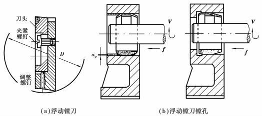 如圖5.2.36所示,單刃鏜刀是把鏜刀頭垂直或傾斜安裝在鏜刀桿上。鏜刀頭垂直安裝的可鏜通孔,傾斜安裝的可鏜盲孔。與車削加工相似,孔徑尺寸要靠調整刀頭的懸伸長度來保證,較為麻煩,且要求有較高的操作技術。這種鏜刀多用于單件小批生產中。