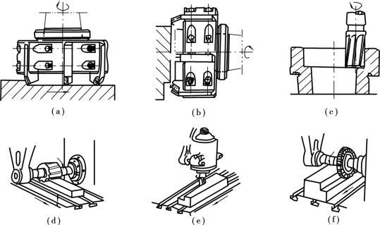 鑲齒端銑刀刀盤直徑一般為φ75~φ300mm,甚至可達(dá)φ600mm,主要加工大平面。鑲齒端銑刀可在立銑上銑水平面(圖5.2.64(a)),亦可在臥銑上銑垂直面(圖5.2.64(b))。